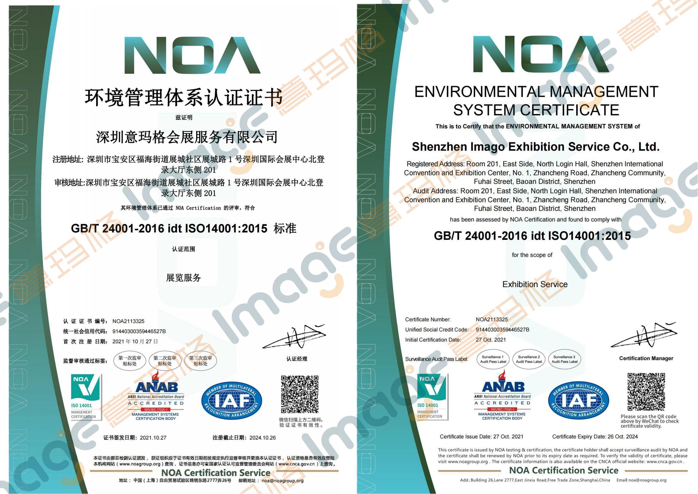 環境管理(lǐ)體(tǐ)系認證證書(shū)